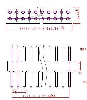 Stiftleiste, Raster 1.27 mm, zweireihig gerade